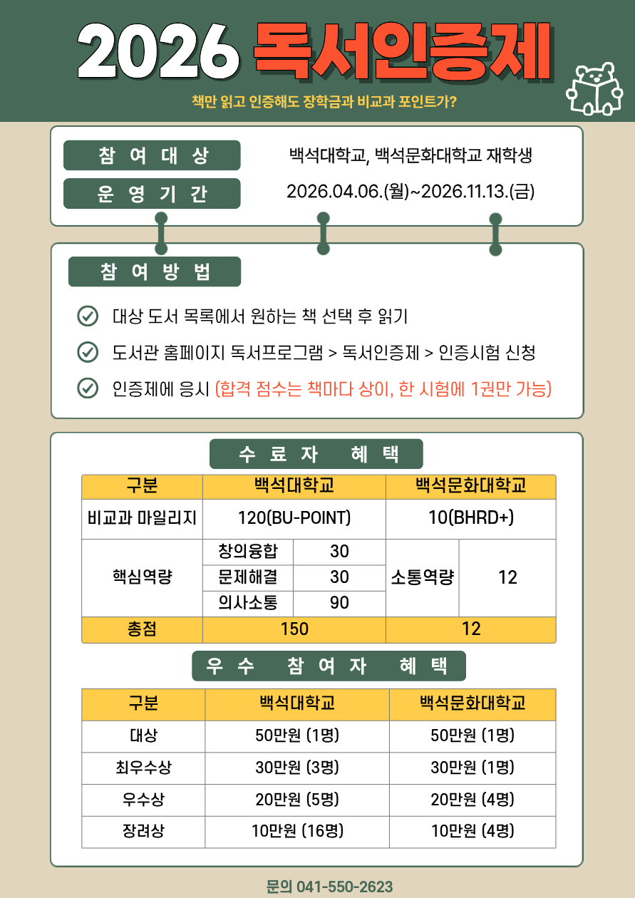 [도서관] 2026-1학기 독서인증제 안내